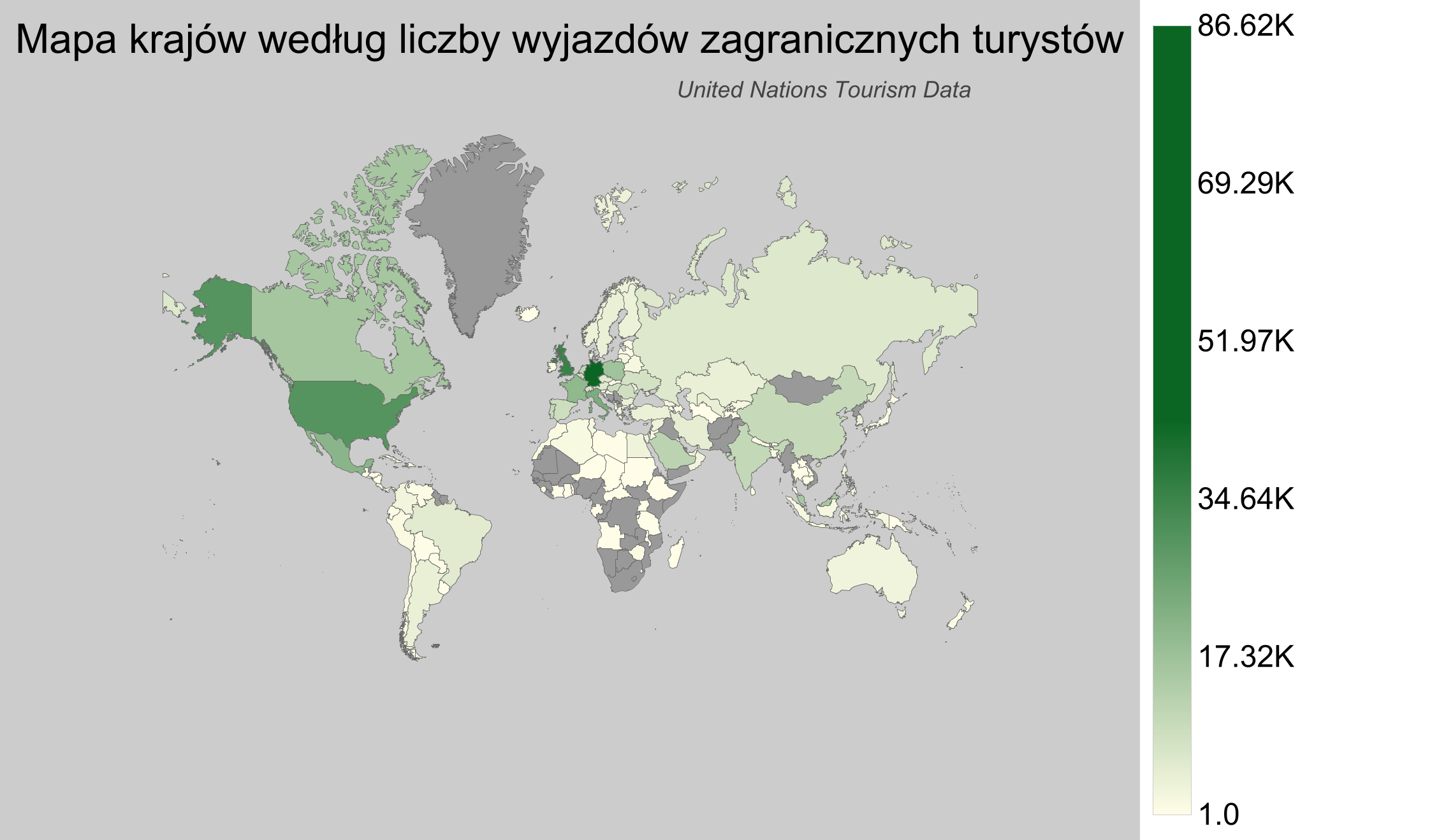 Kraje według liczby wyjazdów zagranicznych turystów